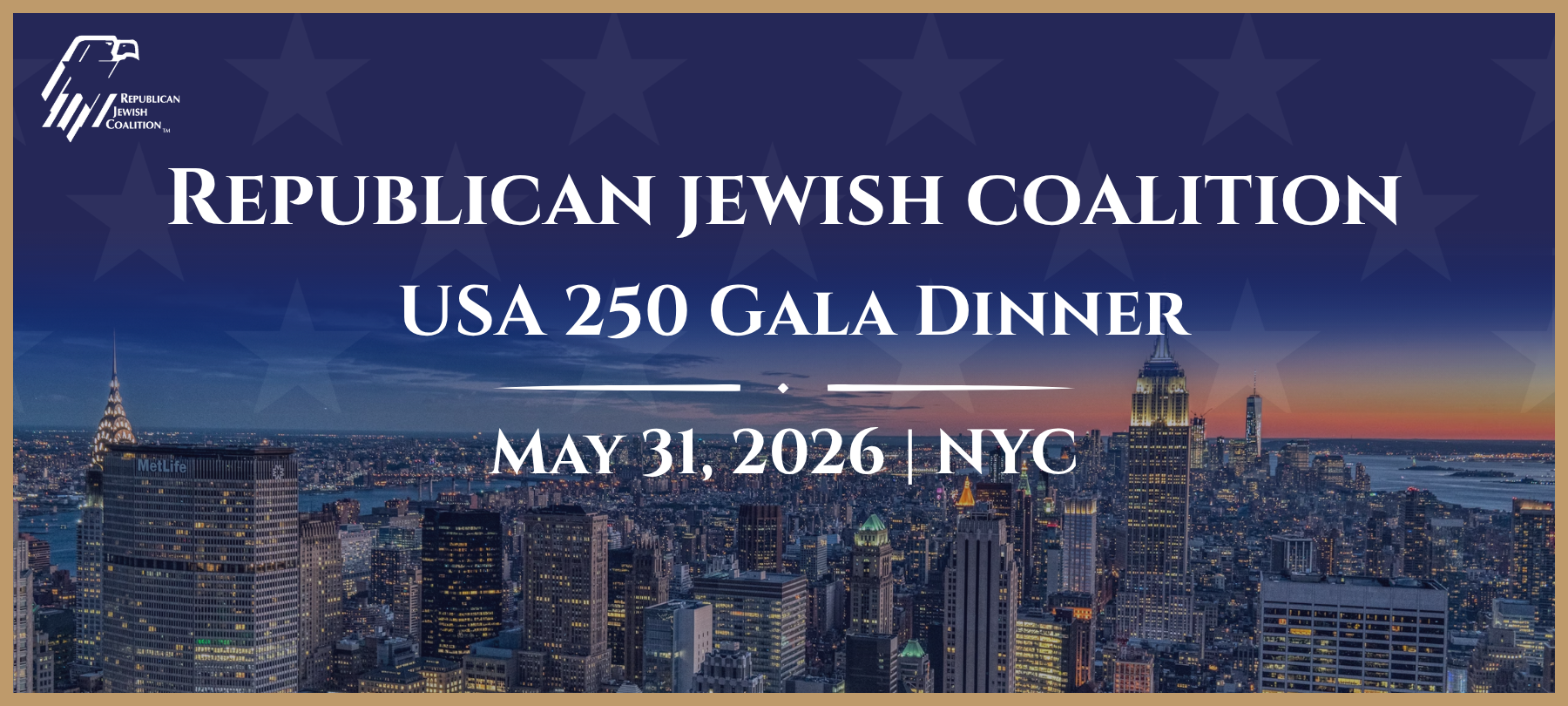 Join us for a spectacular evening when we will celebrate America at 250 as proud Jewish Republicans. Click one of the buttons below to make your reservation for this outstanding event!
