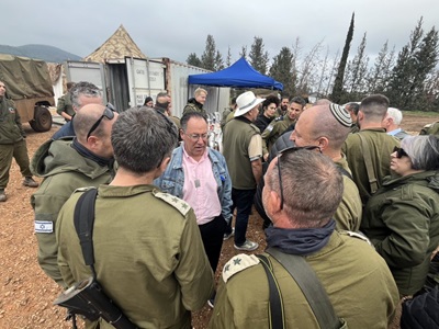 Our trip took us from the far south of Israel to the far north, where it was a tremendous experience to spend time with IDF soldiers near the Lebanese border and hear from them directly about what is happening on the northern front. Just as thousands of Israeli families from the south are displaced and living in temporary housing during this time of war, thousands of families from the north of the country have been evacuated to protect them from the missiles that Hezbollah shoots into Israel.