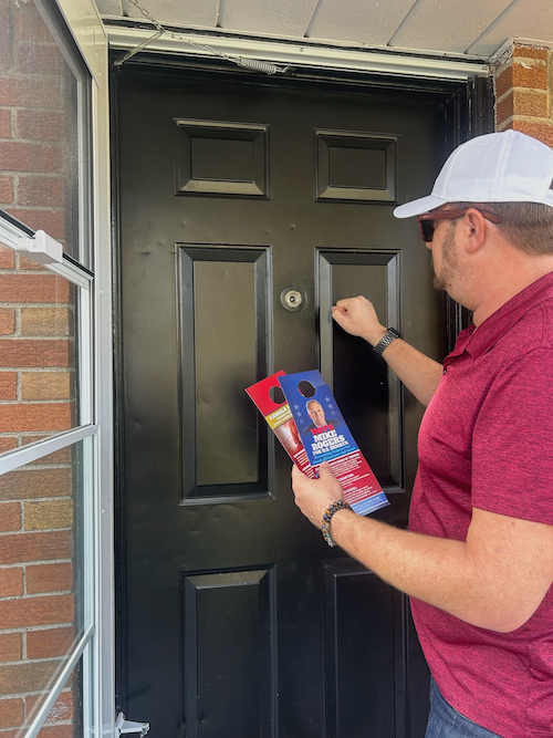 Knocking on doors and leaving persuasive materials at homes in swing states in 2024.