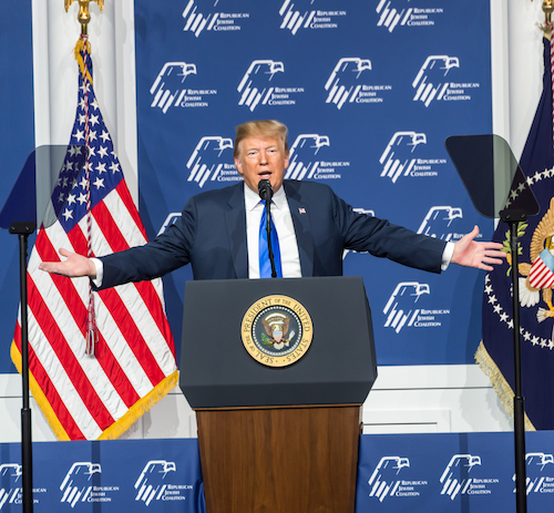 President Donald Trump has spoken at RJC Vegas Summits, in person or via video, several times. Here he addresses the crowd at the 2019 Summit.