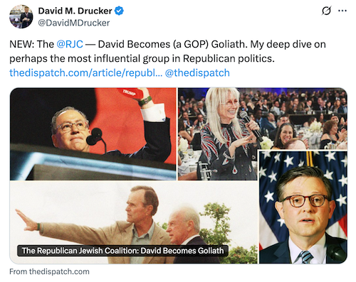 ...Perhaps the clearest sign of the influence the RJC now wields within Republican politics is its annual leadership summit, typically a Thursday-through-Sunday event in late October (except in election years.) Indeed, this is the event that Speaker Johnson rushed off to soon after winning the gavel in the fall of 2023.