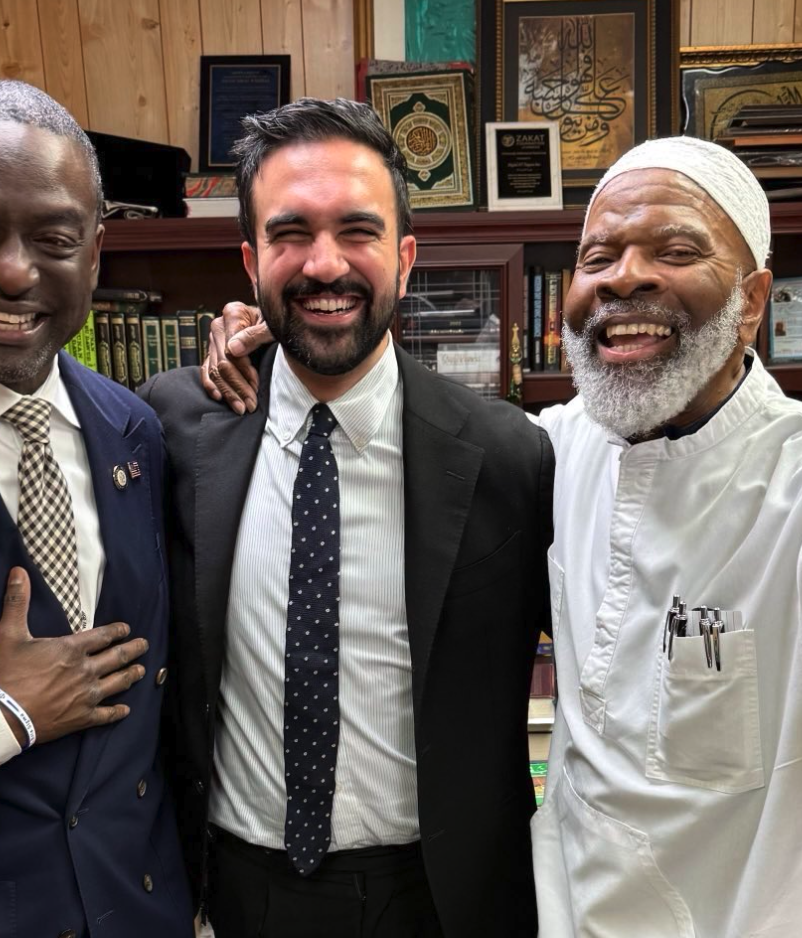 Zohran Mamdani, the Democratic nominee for New York City mayor, poses at Masjid At-Taqwa in Brooklyn with Imam Siraj Wahhaj and City Council Member Yusef Abdus Salaam, Oct. 17, 2025. Source: x.com/ZohranKMamdani