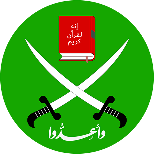 The logo of the Muslim Brotherhood includes a Quran and crossed swords.