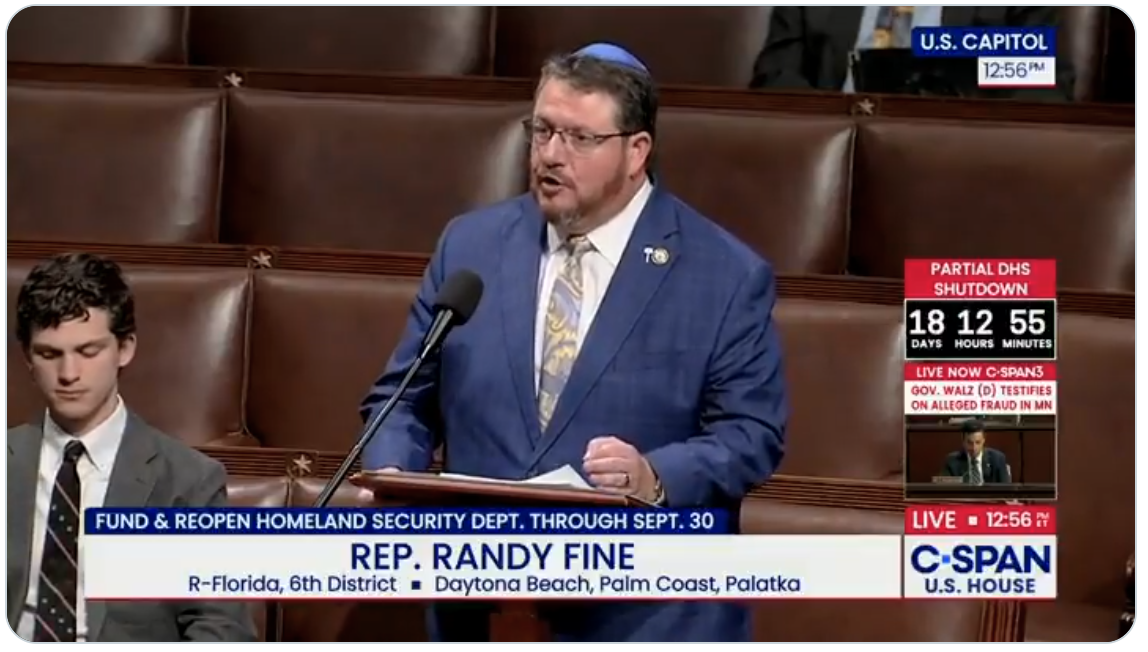 Rep. Randy Fine (R-FL) stood up on the House floor this week to call for the reopening of the Department of Homeland Security. Democrats have refused to fund and reopen DHS and are holding American security hostage.